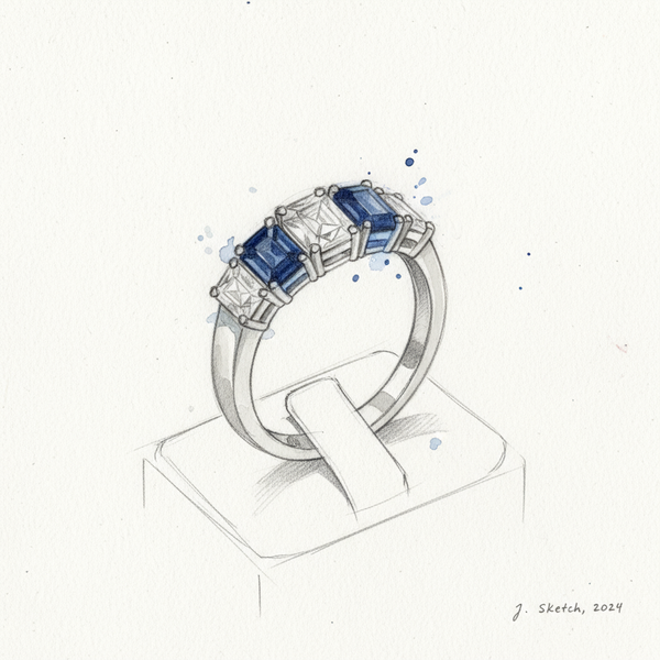 Nemesfém: 18 kt-os sárga arany - Felület: fényes, polírozott Gyűrűméret: 52 mm - Tömeg (kb.): 4,7 g - Kő, drágakő: gyémánt, zafír