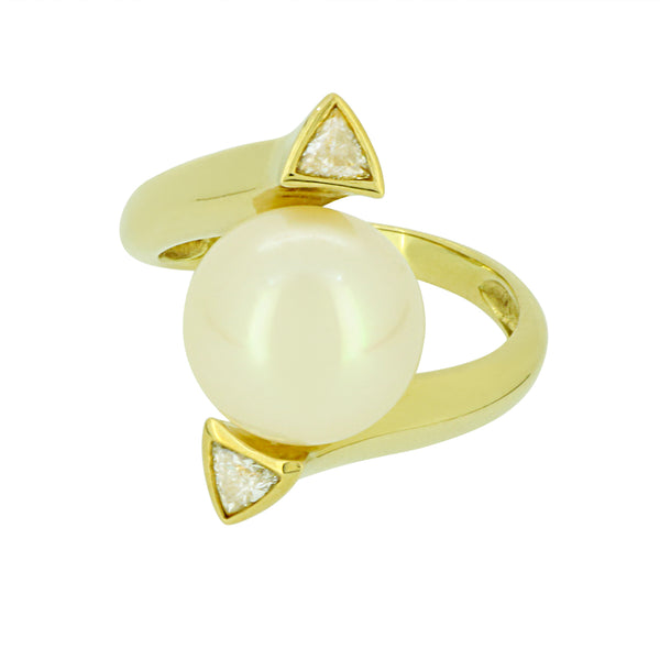 14 kt-os Egyedi arany brilles gyűrű gyönggyel