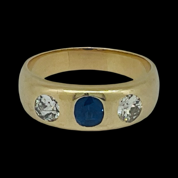 Nemesfém: 580%o-es sárga arany - Felület: ép, nem kopott- Gyűrűméret: 59 mm - Tömeg (kb.): 7 g - Kő, drágakő: gyémánt, zafír